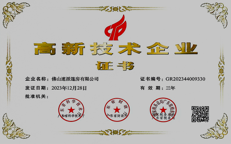 “速派”秉承“質量第一、服務至上”的宗旨,始終堅持以客戶需求為導向,不斷創新,提升產品質量和服務水平,為做到技術引領,我們建立了省級工程技術研究中心。經過多年在篷房領域的深耕,獲得了各級部門的高度認可,取得《國家高新技術企業》、《廣東省篷房柔性制造工程技術研究中心》、《廣東省專精特新中小企業》、《廣東省“守合同重信用”企業》、《制造業高質量發展標桿企業》、《重點信用認證企業》等30多項資質、榮譽證書,180多項專利證書(其中20多項發明專利),業務市場輻射全國及海外150多個國家地區,先后為奧運會、亞運會、F1賽事、美國網球公開賽、馬術聯賽、中國國際航展、亞洲通航展、國際家博會、中國國際消博會、中阿博覽會等一系列大型賽事、活動提供了戶外保障解決方案和服務,并為我國各軍兵種提供了各型裝備的保障產品。